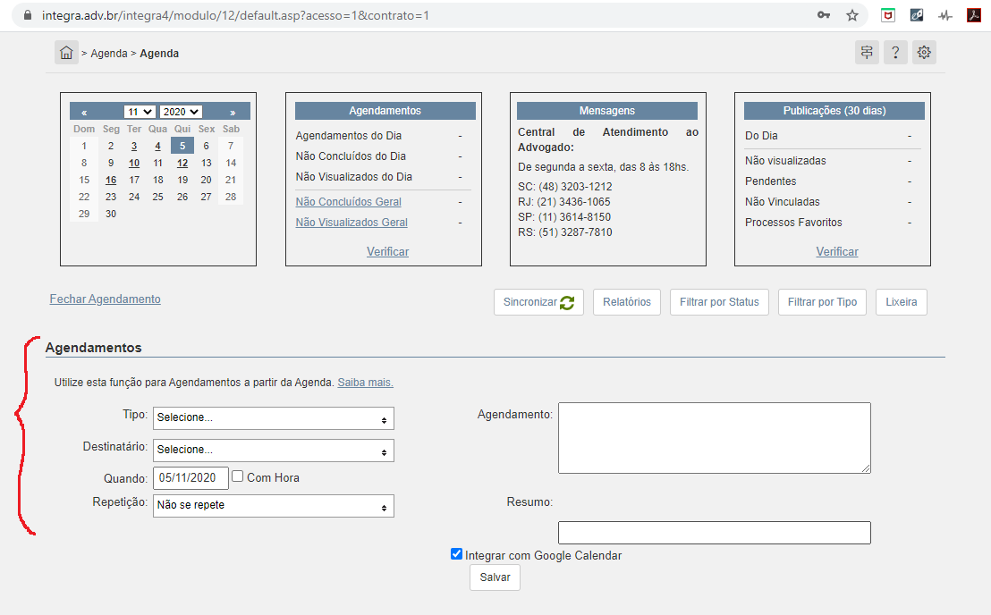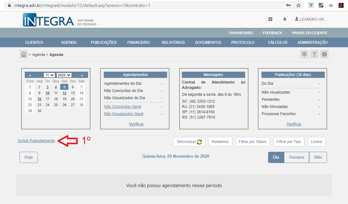 2.1.1. Primeiro contato e agendamento